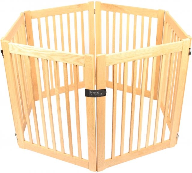 Freestanding 32″ 6-Panel Outdoor Dog Gate (up to 108″) is constructed of solid white oak hardwood for outdoor durability. Shipped fully assembled and ready to use. Free shipping!